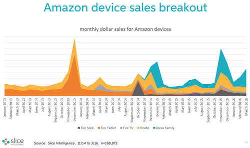 關(guān)于亞馬遜自有品牌產(chǎn)品,今年Echo的銷量遠(yuǎn)超Kindle。